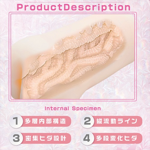 縦に流れる大きなイボヒダに包まれながら部位ごとに異なる感触設計を配置。